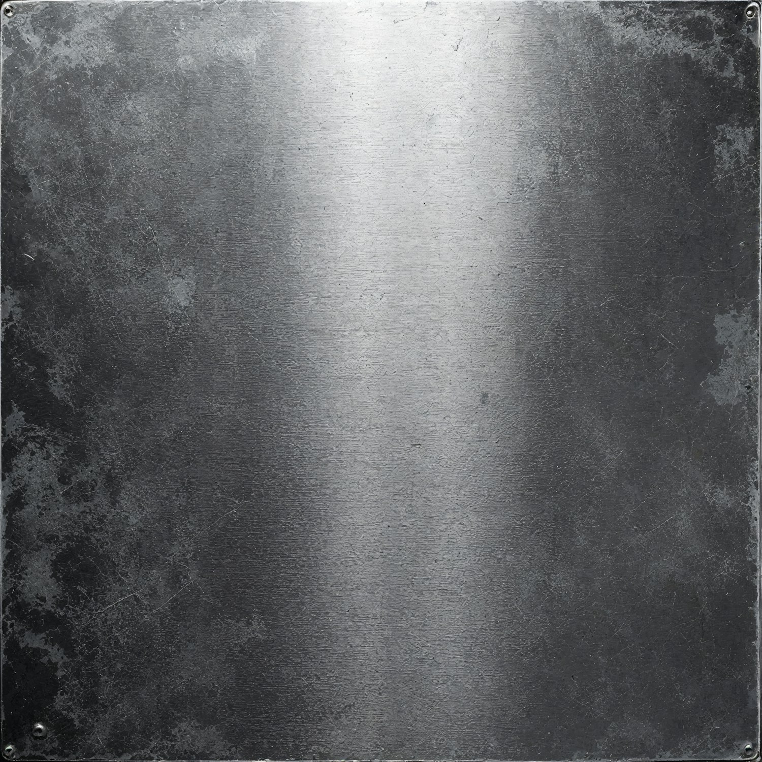 A textured, aged metal surface with scratches and discoloration, featuring a brushed effect and industrial silver-gray tones.