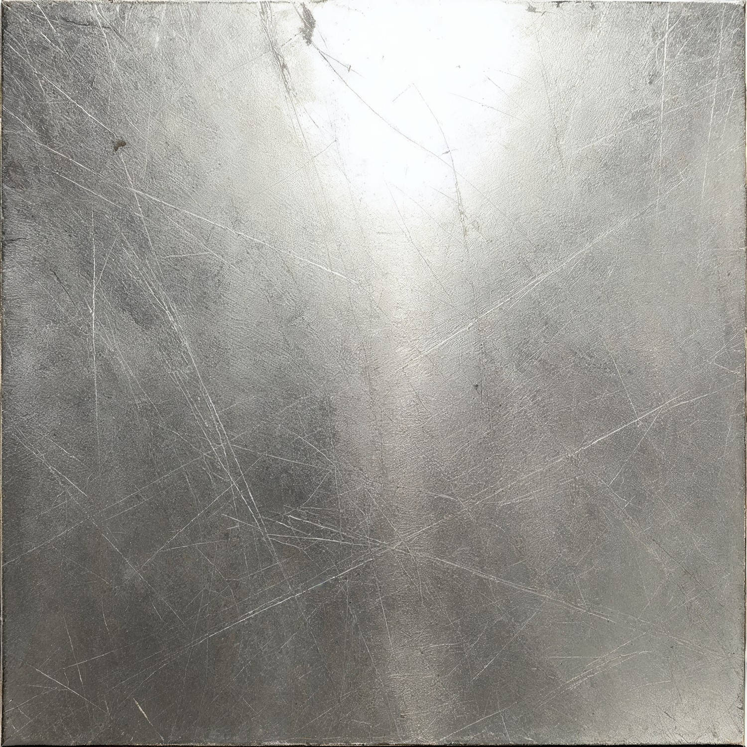 Textured silver metallic surface with fine scratches and scuffs, reflecting light for an industrial look.