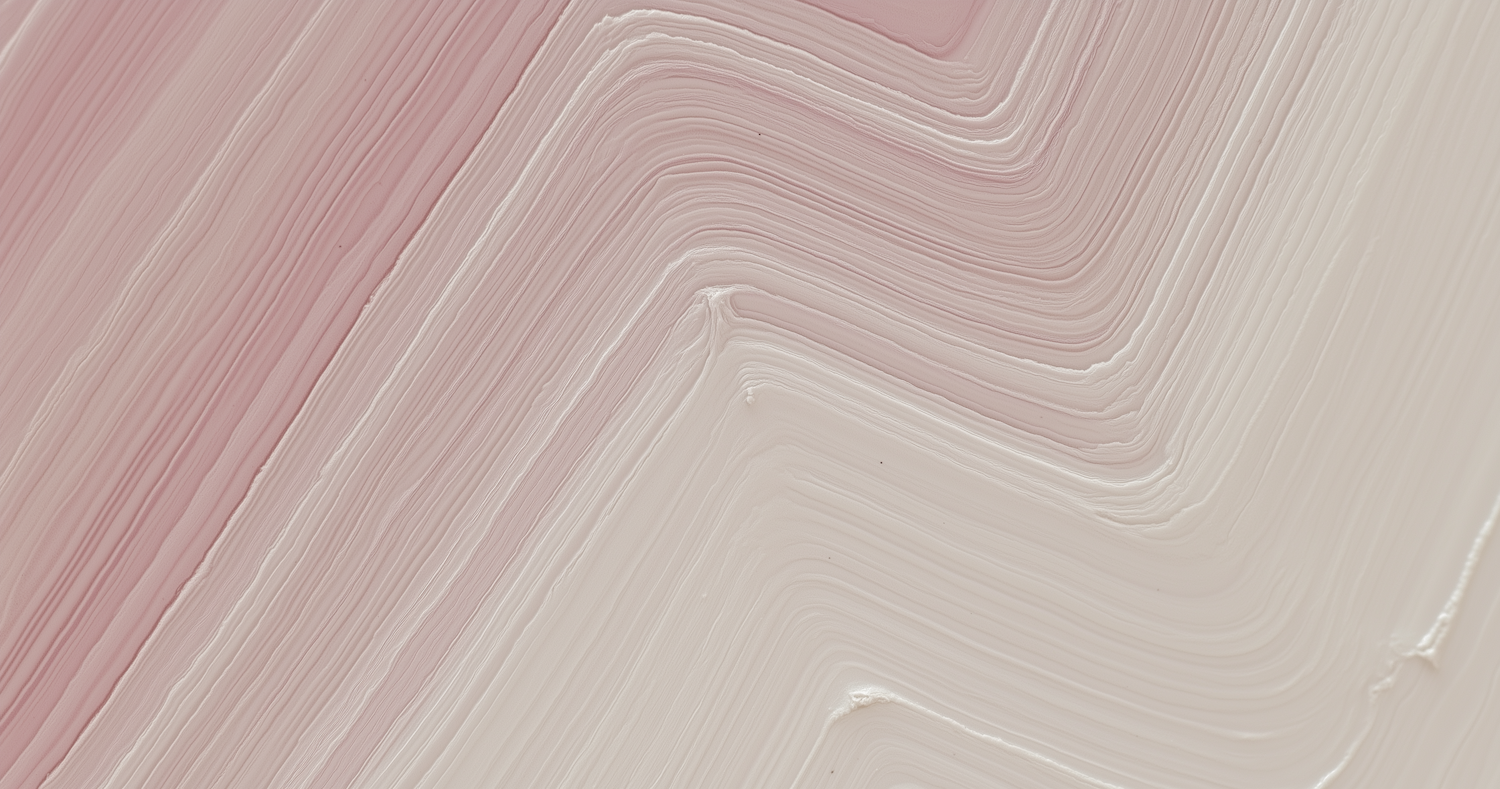 Close-up of textured pastel pink and cream paint strokes in a zigzag pattern, showcasing depth and artistic detail.
