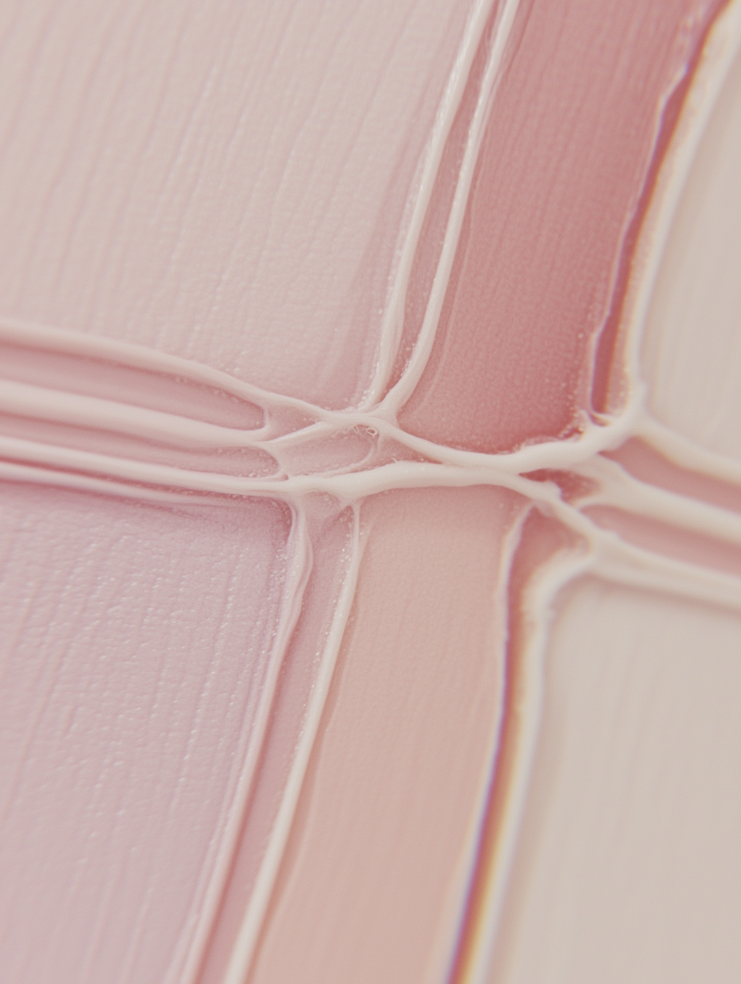 Close-up of pastel pink and cream paint strokes with textured brush details, creating an abstract and calming aesthetic.