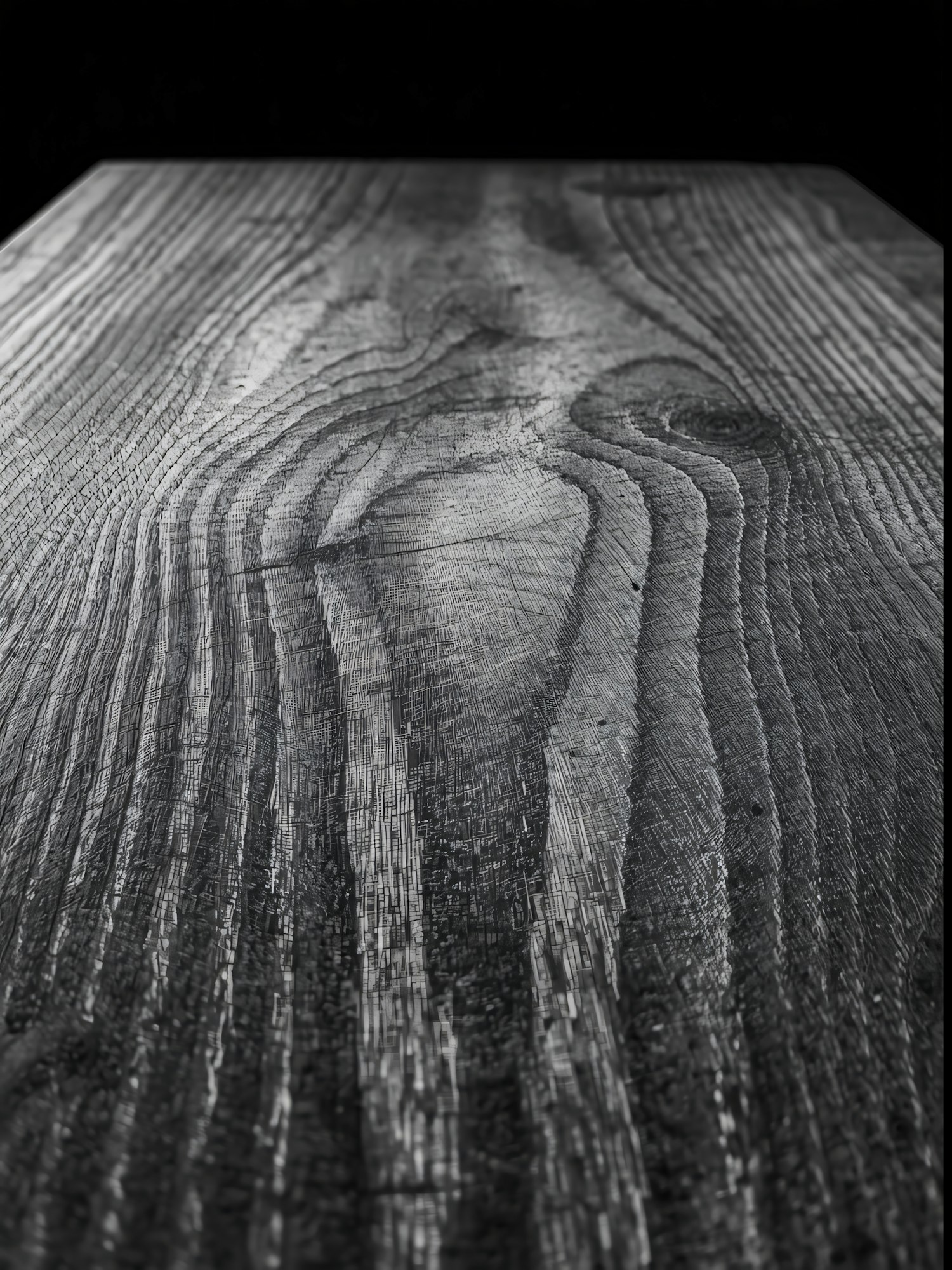 Close-up of a wooden surface with detailed grain patterns and textures, emphasizing its natural beauty and intricate design.