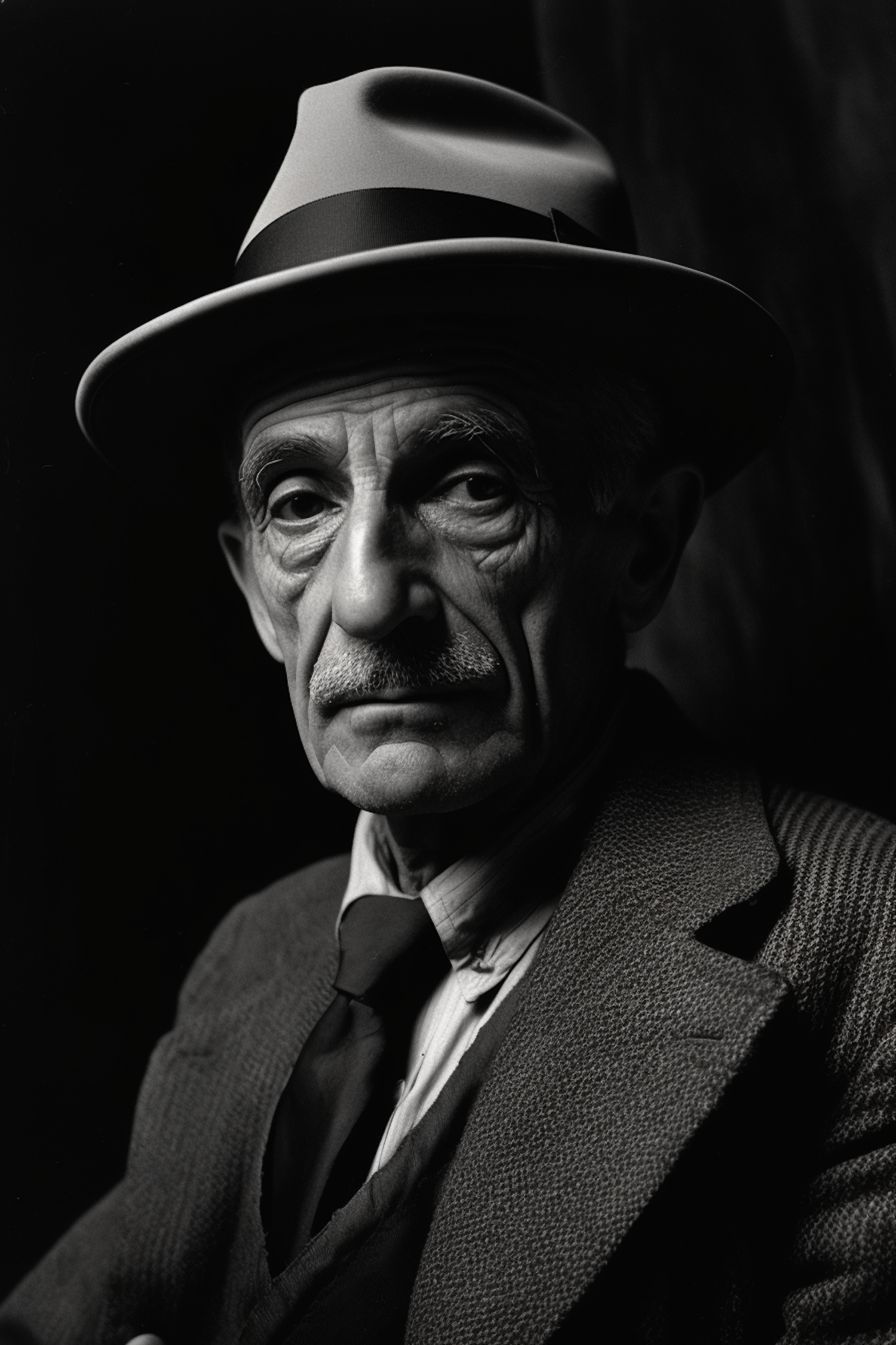 Black and white portrait of an elderly man in a fedora, exuding vintage elegance and wisdom with dramatic lighting.