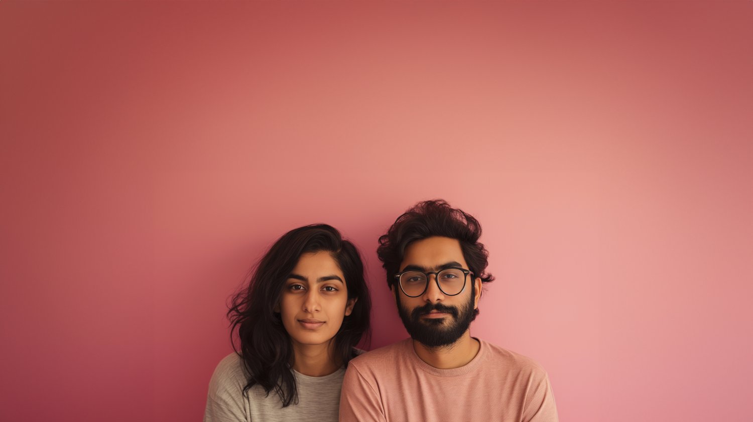 Serene Companionship - Modern Couple Against Pink Backdrop