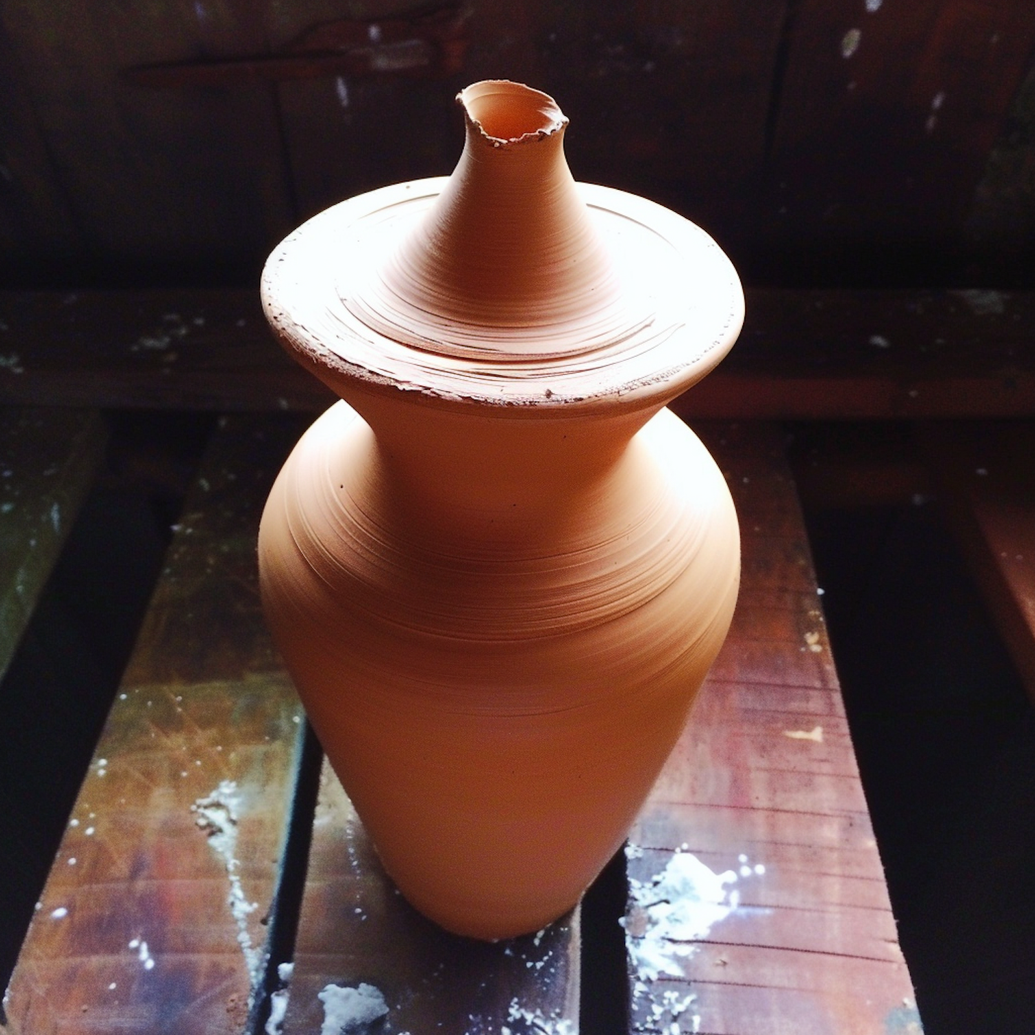 Handcrafted clay pot with a rustic charm on a wooden surface, showcasing its earthy terracotta hue in soft natural light.