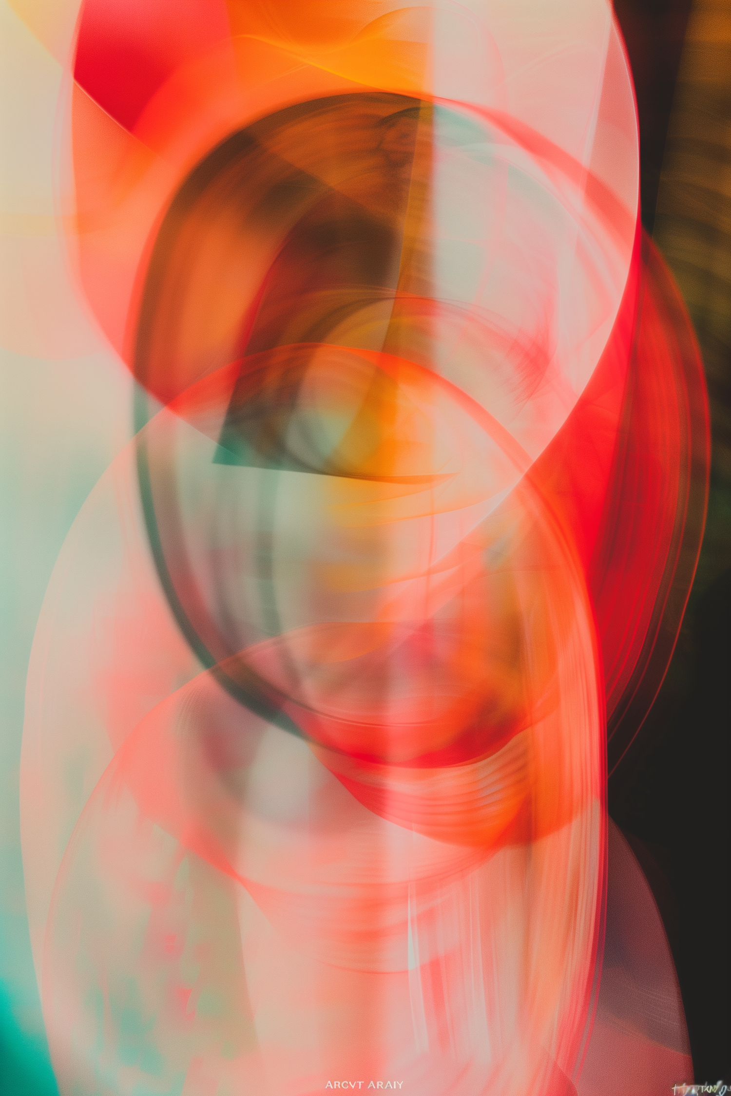 Dynamic abstract art with swirling red, orange, and teal hues, creating a vibrant and fluid composition full of energy and depth.