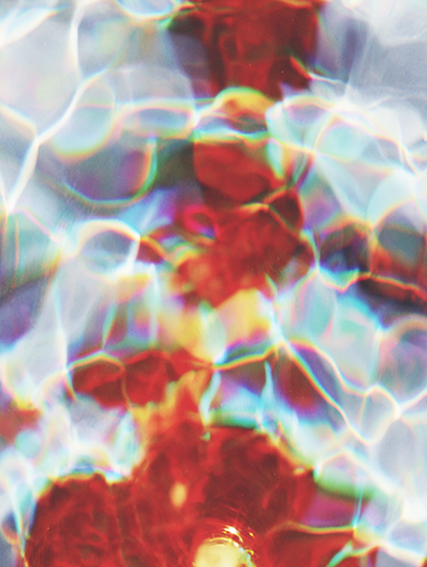 Abstract light patterns with vibrant red, blue, and yellow hues creating a dynamic and fluid visual effect.
