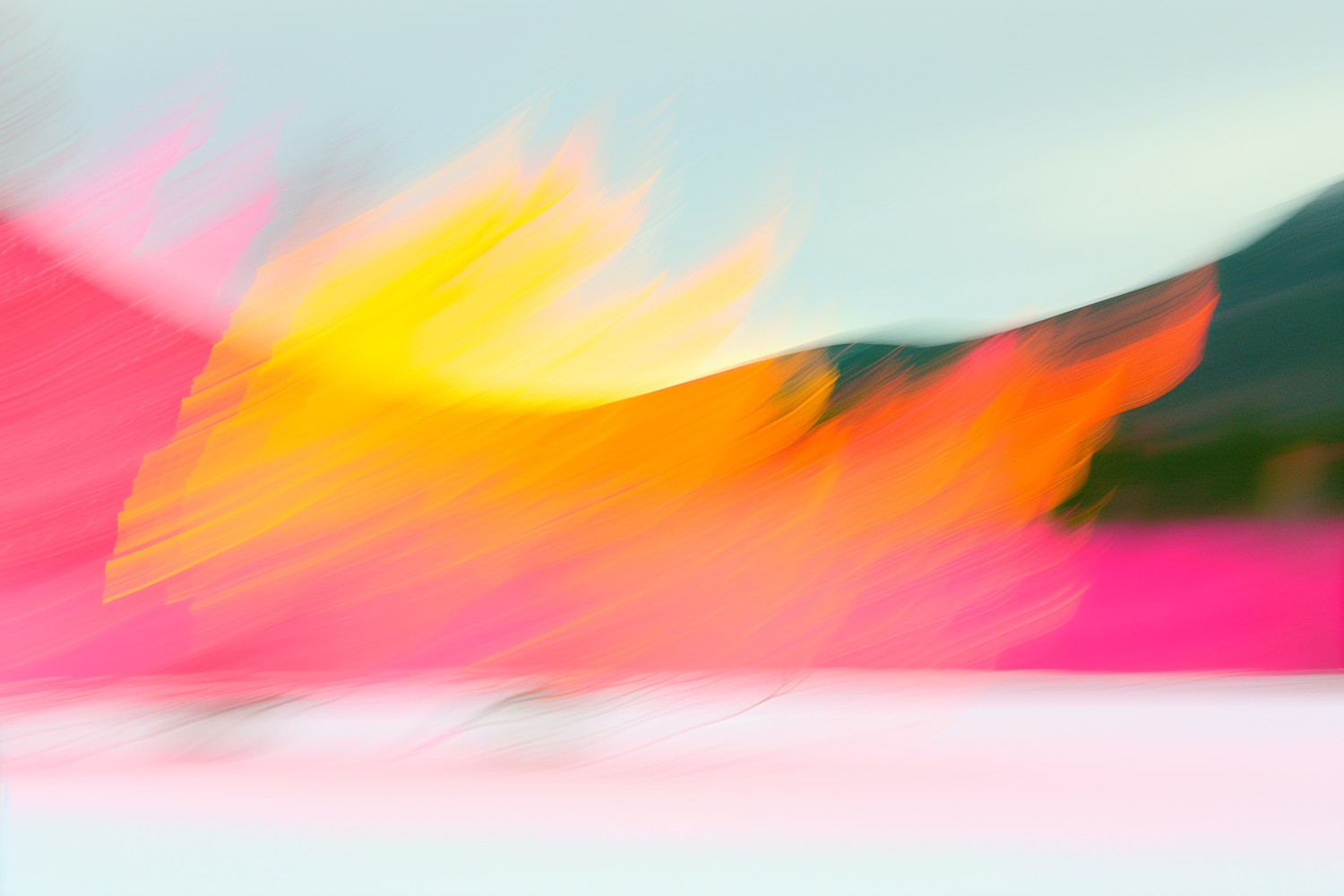Bright abstract art with yellow, orange, and pink streaks blending into a pale blue and white gradient background. Dynamic and vibrant.