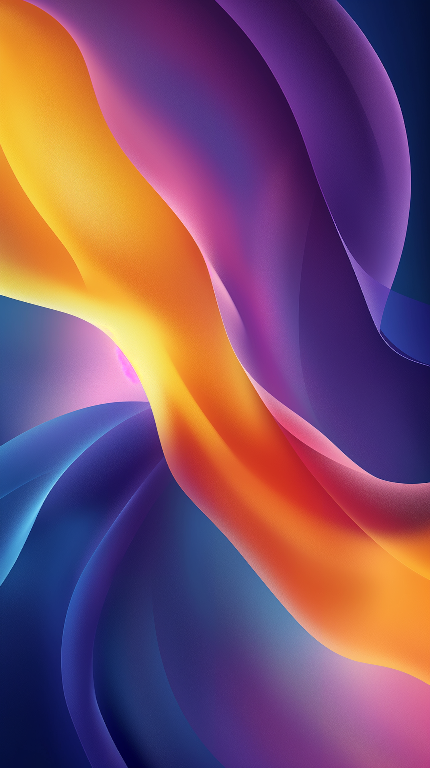 Vibrant abstract design with flowing shapes in purple, blue, and orange hues, creating a dynamic and energetic visual effect.