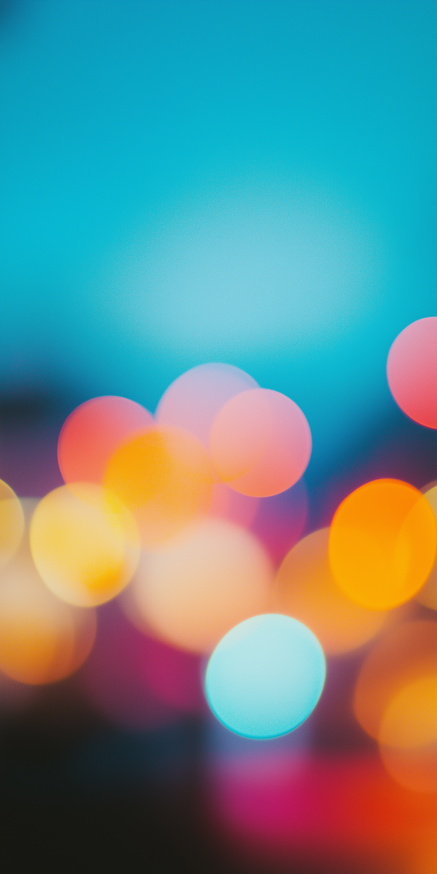 Vibrant abstract bokeh with colorful circles on a turquoise gradient background, creating a dreamy and dynamic visual effect.