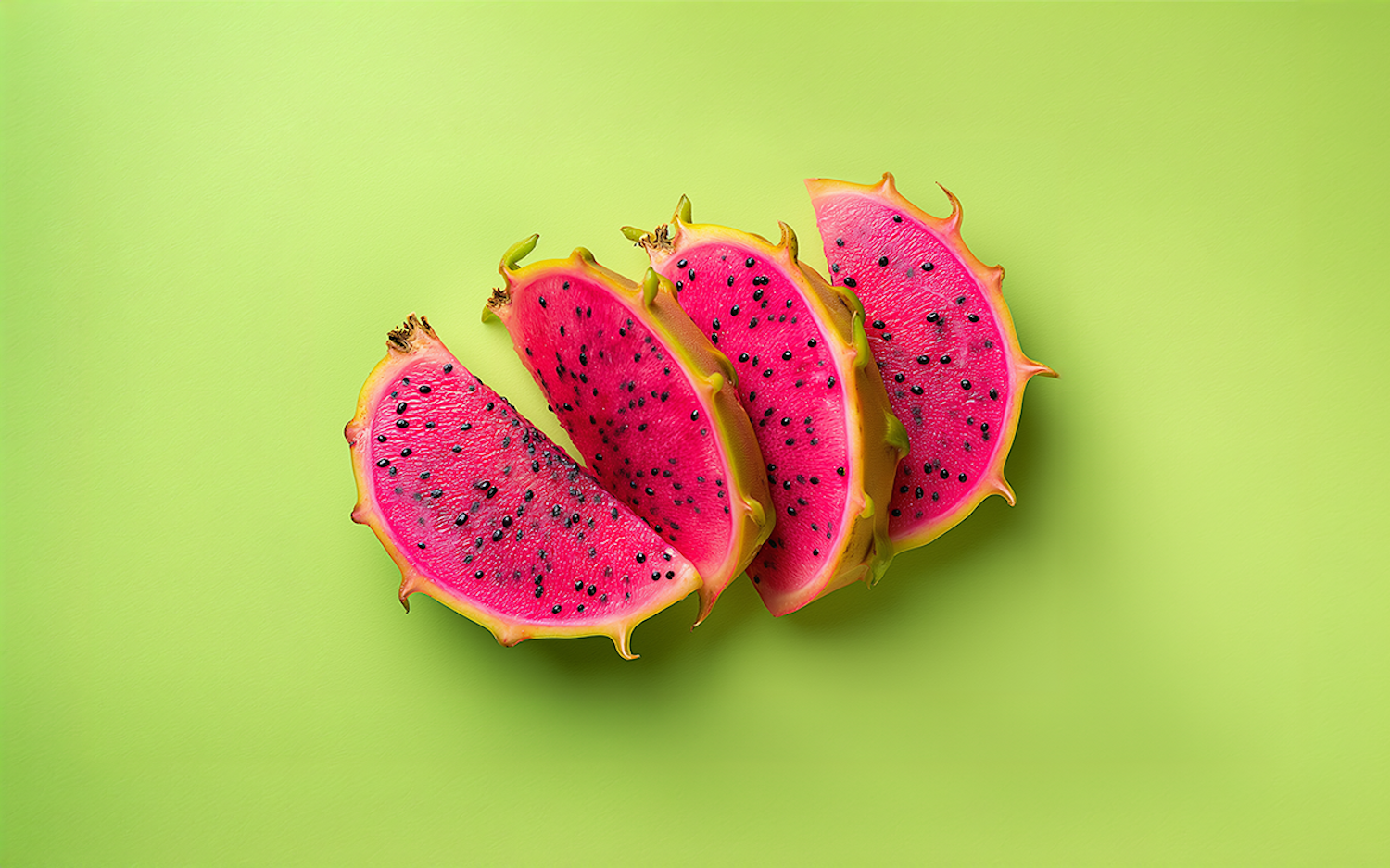 Vibrant Dragon Fruit Slices on Lime Green Background