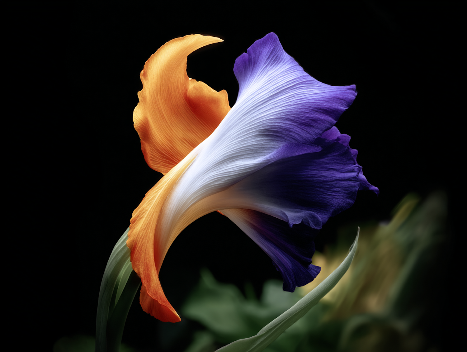 Close-up of a vibrant flower with orange and purple petals, set against a dark background. Perfect for nature and floral enthusiasts.