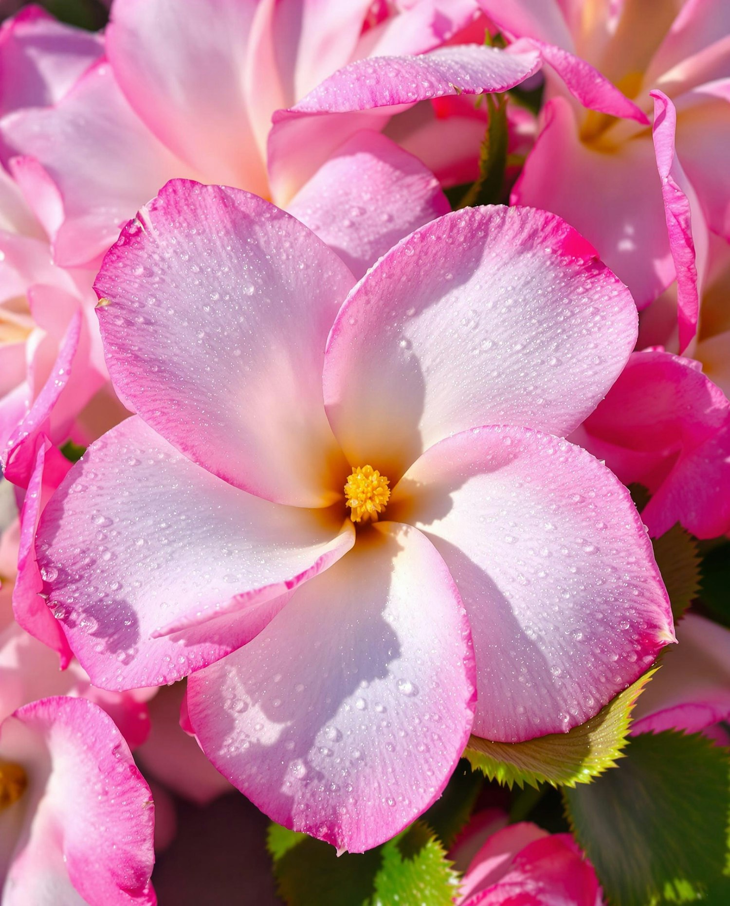 Bright and colorful floral close-up, fresh flowers with water droplets, macro photography, high saturation, dreamy and vibrant, soft natural light, joyful and lively aesthetic — A sea of colorful gardenias, sparkling with dew.