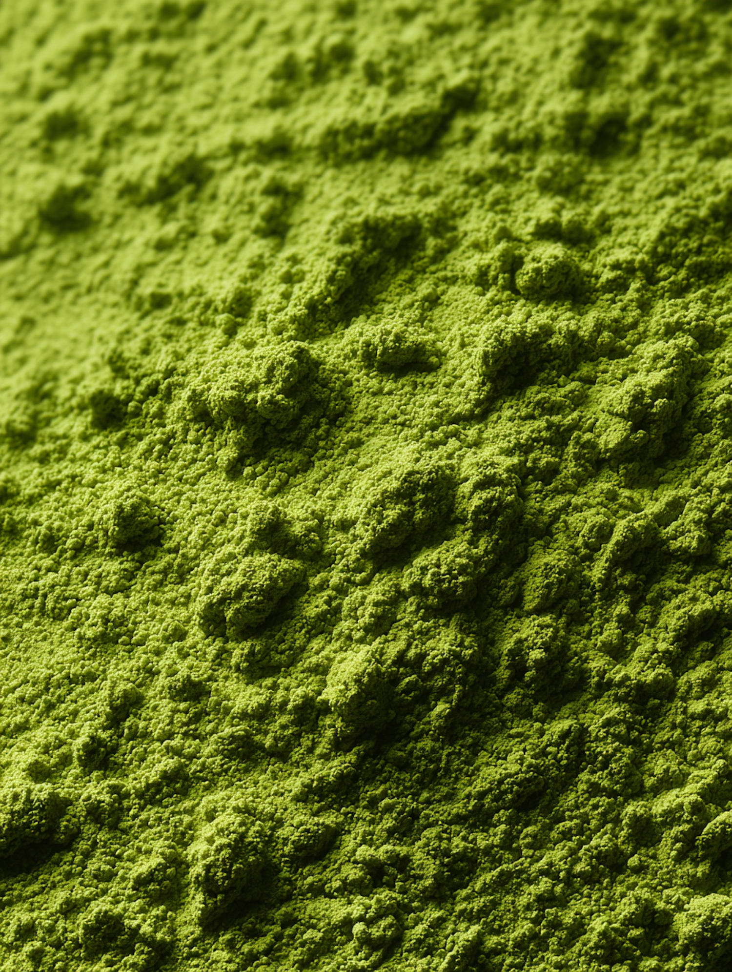 Close-up of vibrant green powder with detailed texture, likely matcha, showcasing its fine granules and natural, organic appearance.