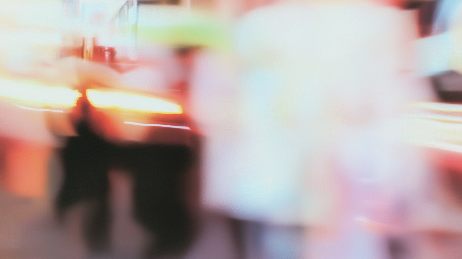 Abstract blurred image with vibrant red, orange, and white hues, featuring light streaks and a dynamic, dreamlike atmosphere.