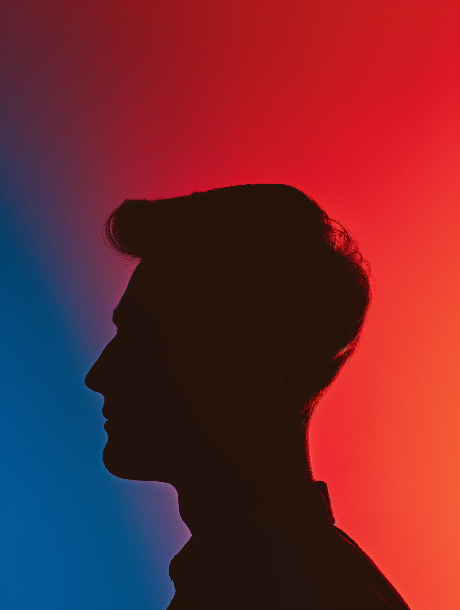 Silhouette of a person against a vibrant blue to red gradient background, creating a striking contrast.