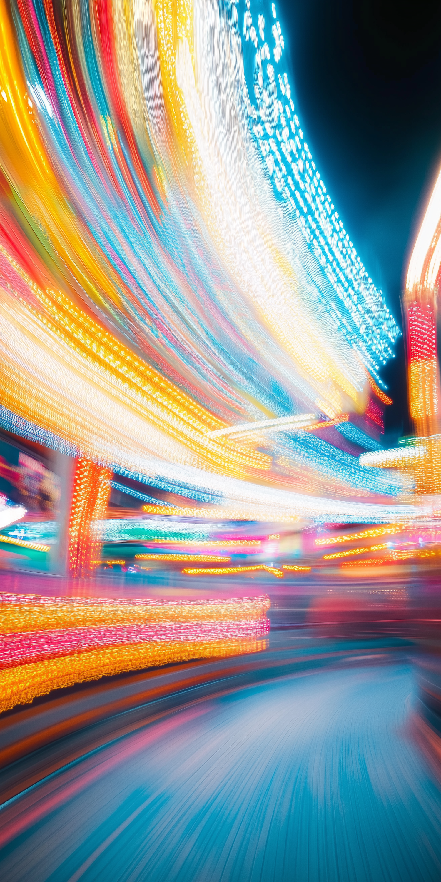 Dynamic long-exposure shot of colorful swirling lights, creating a vibrant and energetic abstract pattern.