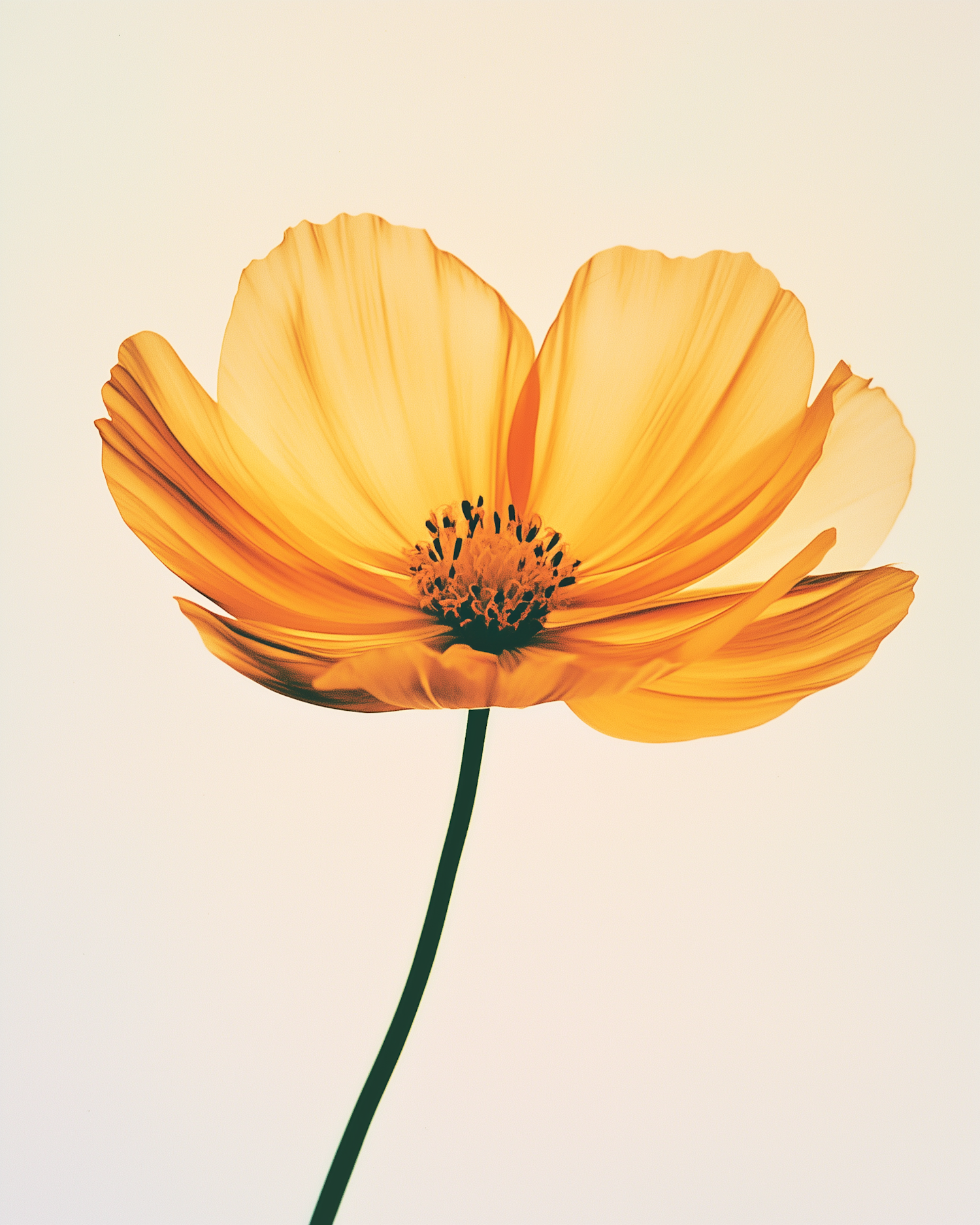 Vibrant yellow flower with delicate petals and a dark center against a soft background, highlighting natural elegance and beauty.