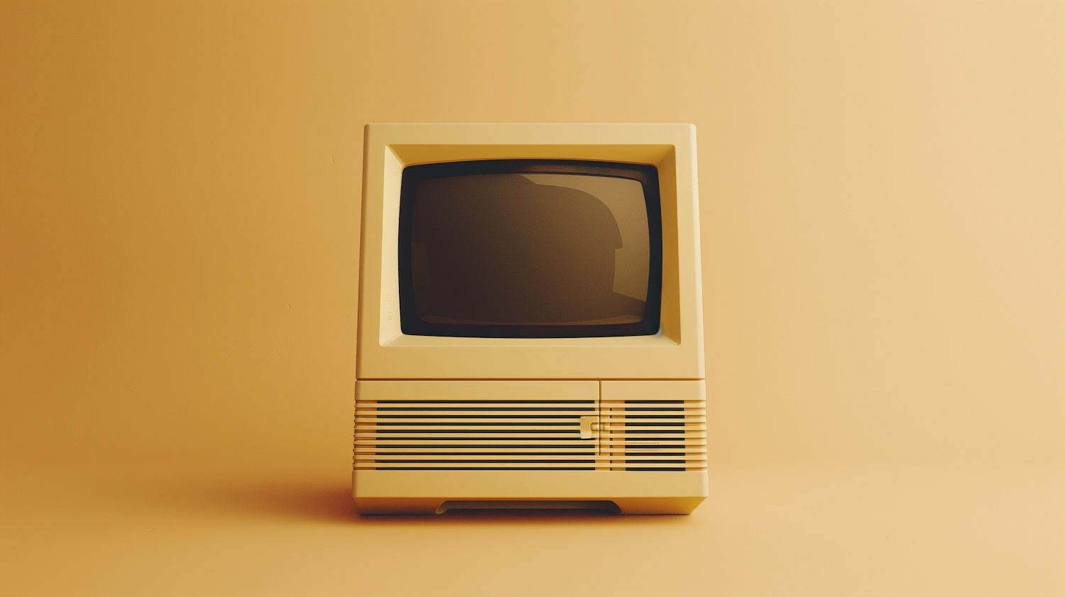 Vintage computer monitor with a retro design against a beige background, showcasing classic technology aesthetics.