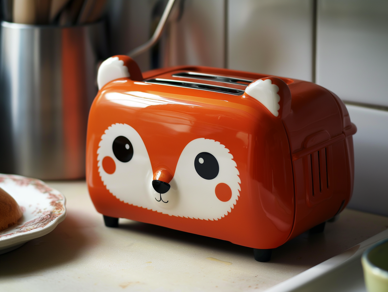 Adorable animal-themed toaster with orange and white design, featuring cute eyes and ears, perfect for a playful kitchen touch.