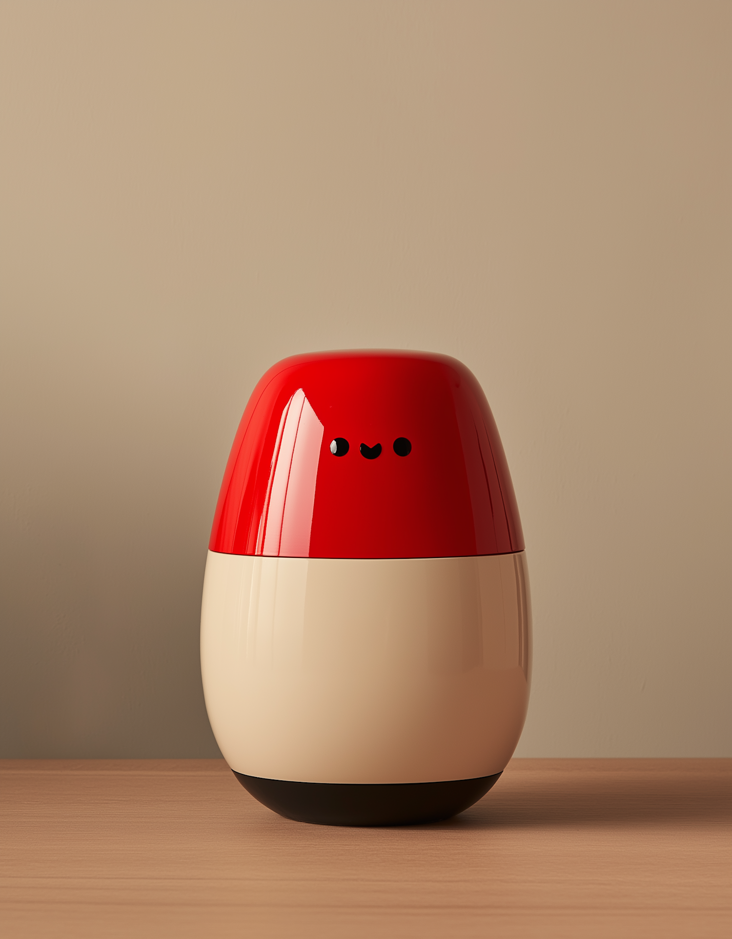 Charming egg-shaped container with a red top and cream bottom, featuring a cute face. Perfect for adding a playful touch to any space.