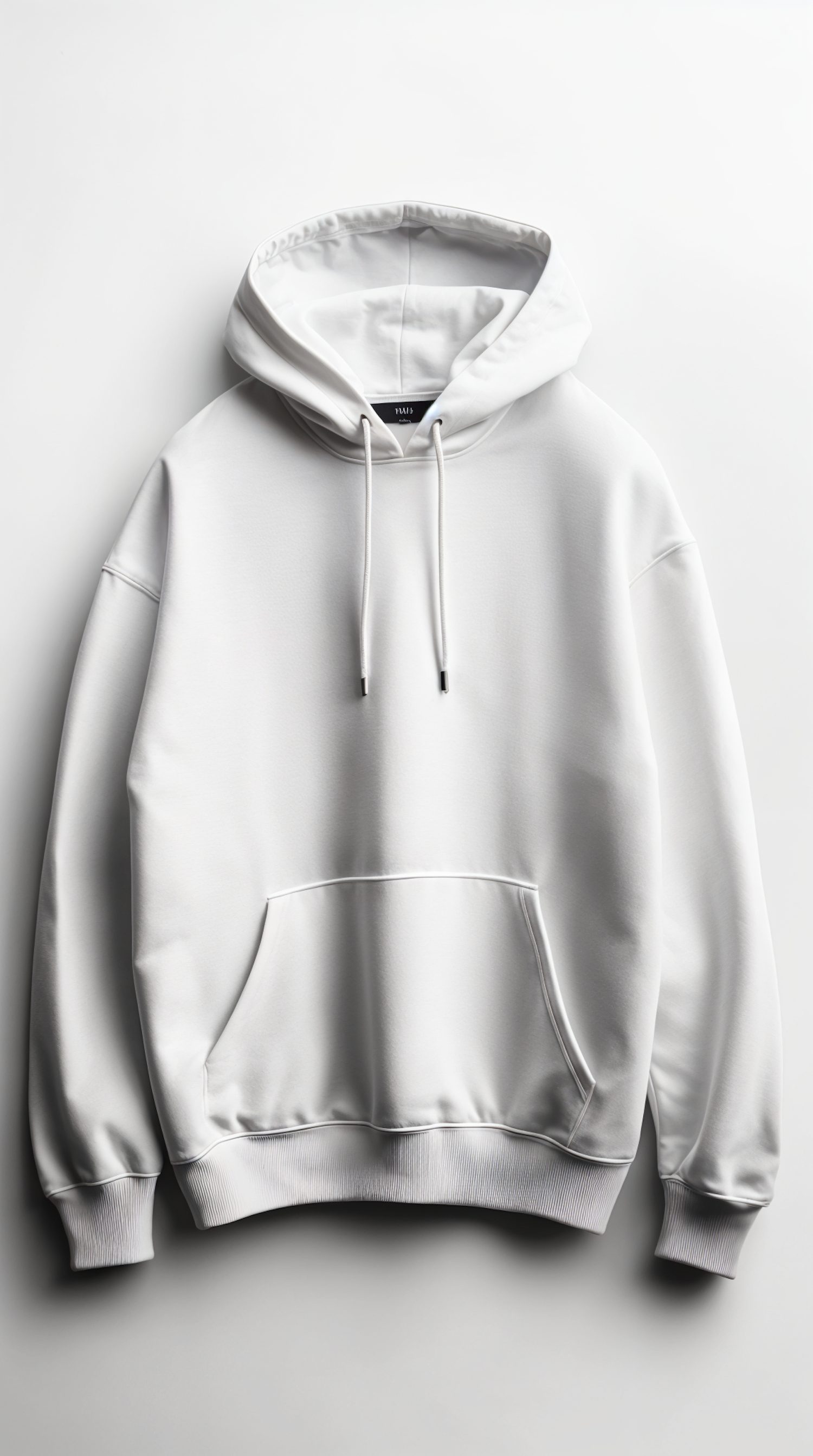Plain white hoodie with drawstring hood and front pocket, perfect for casual wear. Soft fabric and ribbed cuffs add comfort and style.