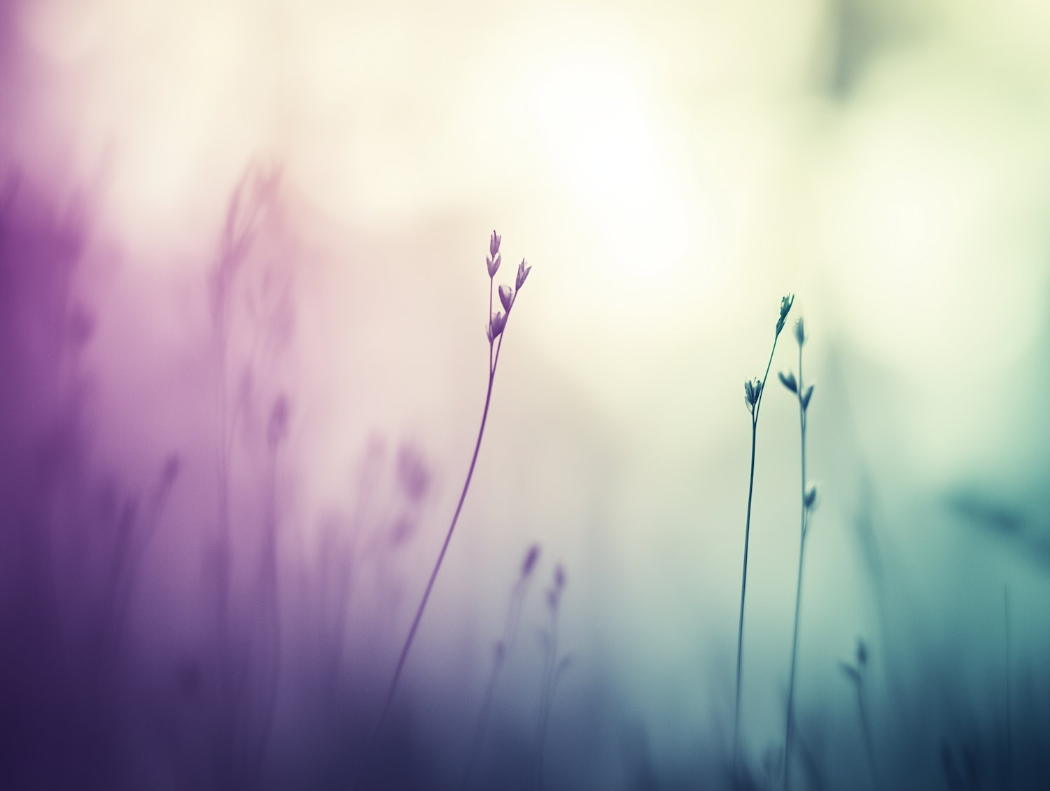 Dreamy wildflowers with slender stems and soft purple-green hues create a tranquil, ethereal vibe in this minimalistic nature scene.