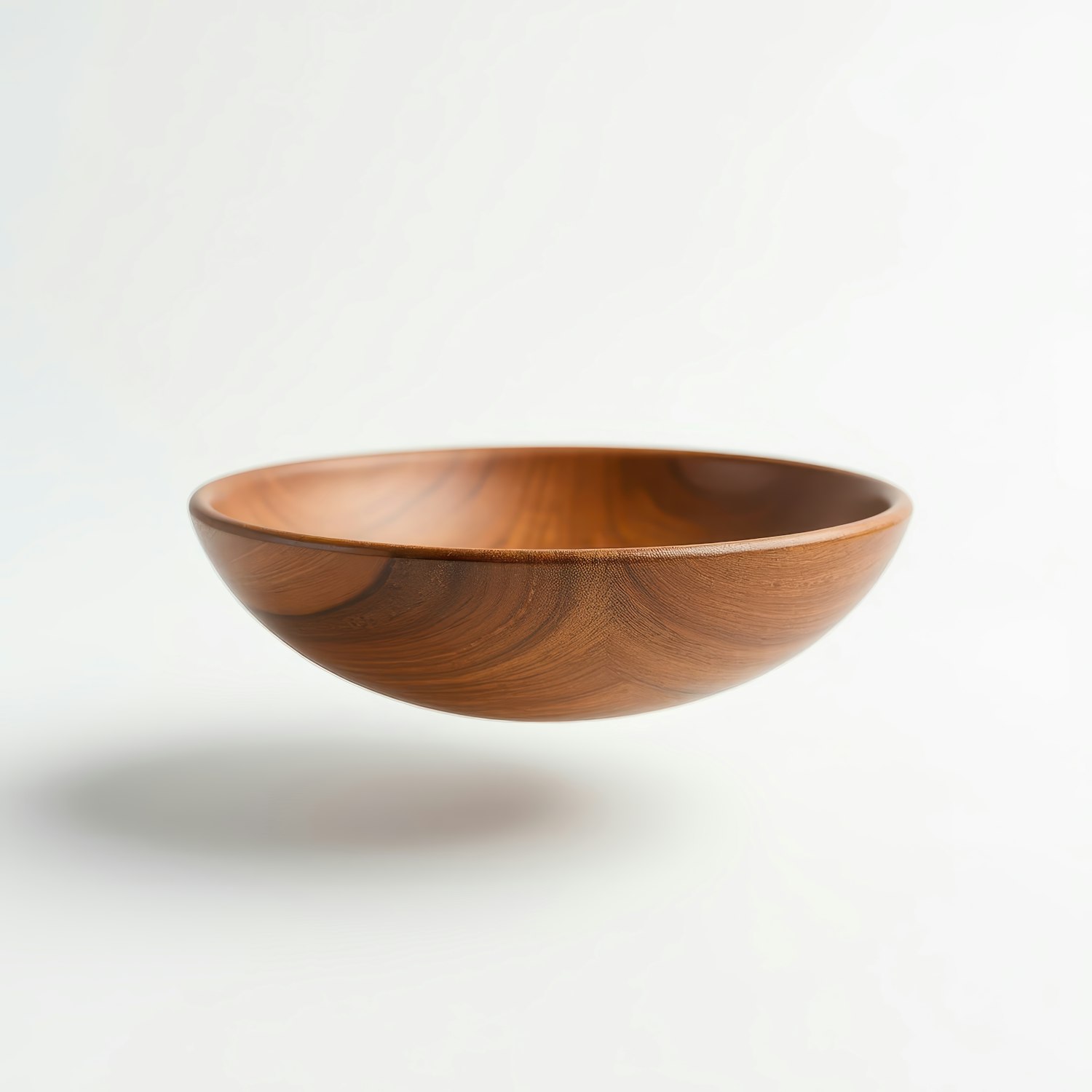 Elegant wooden bowl with rich grain patterns against a white background, creating a minimalist and sophisticated look.