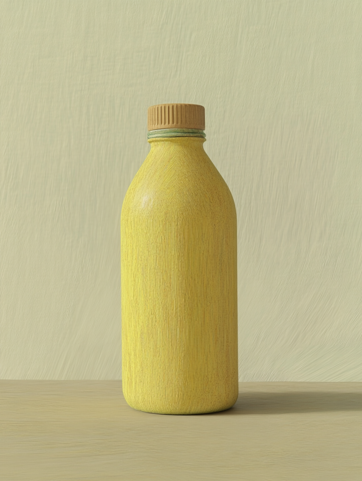 Minimalist yellow bottle with textured surface against a matching background, creating a harmonious and simple aesthetic.