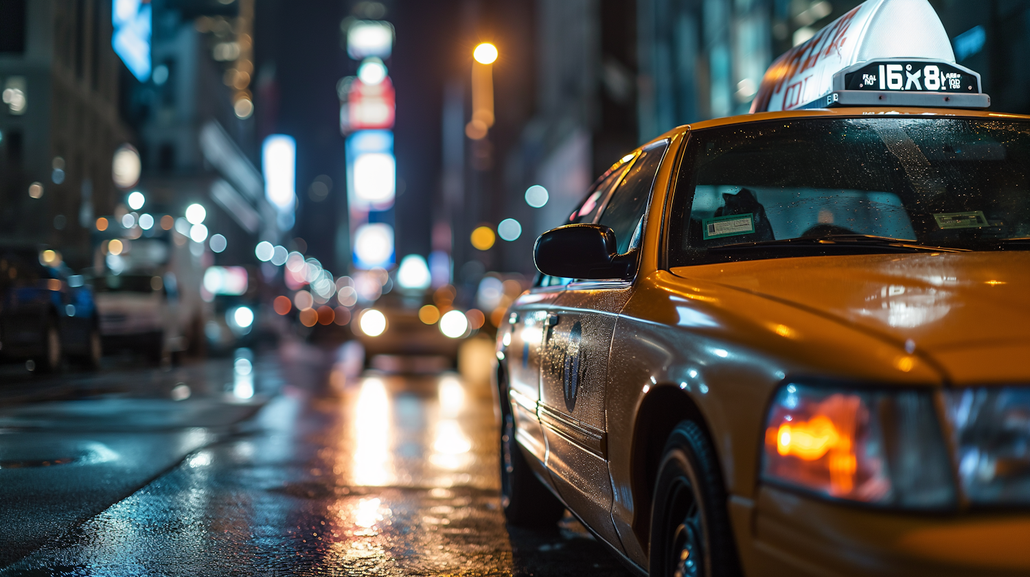 Rain-Kissed Urban Taxi Nightscape