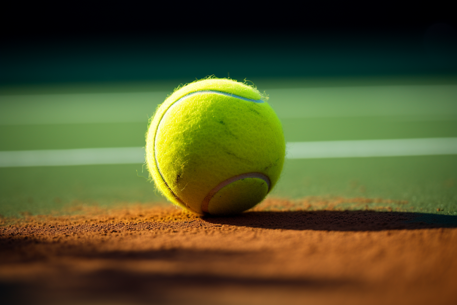 Sunlit Tennis Ball on Clay Court