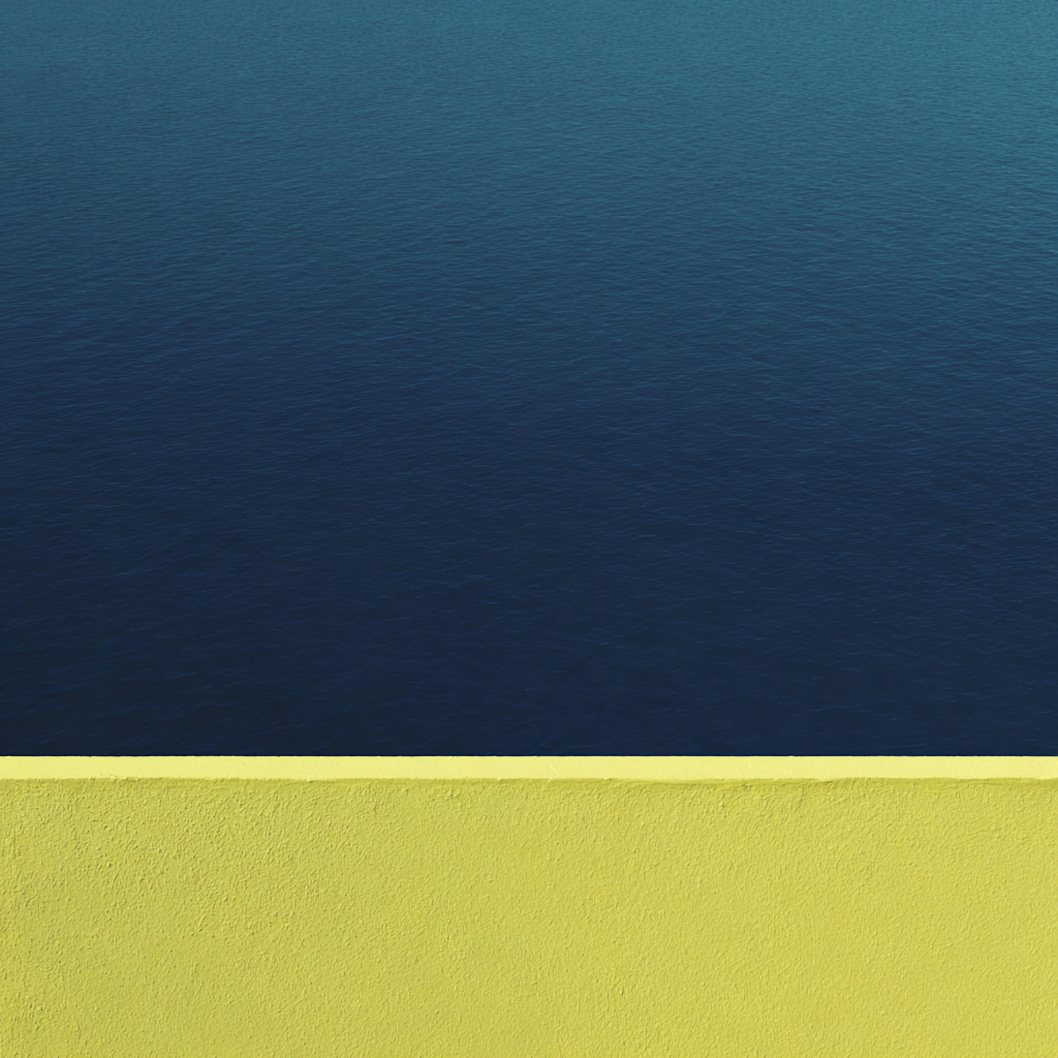 Minimalist photo of a yellow wall against a calm blue sea, showcasing bold colors and a serene composition.