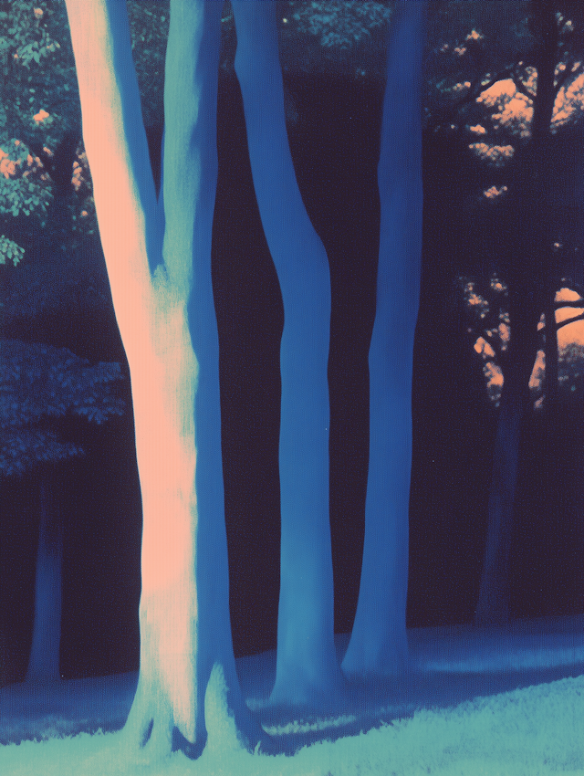 Blue tree trunks