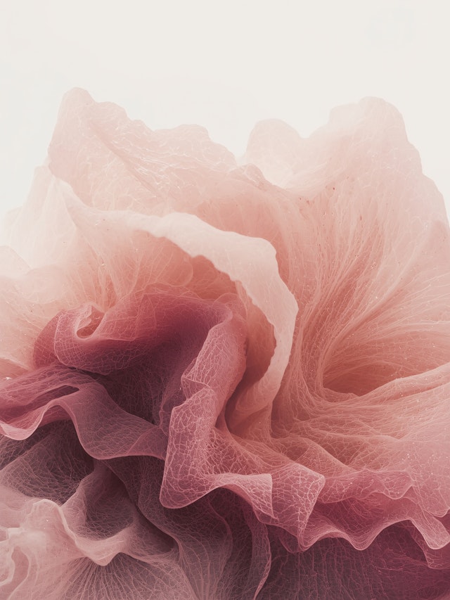 - EtherealFlowersDreamy atmosphereMysteryAbstract designSereneLilac garmentSoft lightingSurrealMuted teal backgroundTranquilityLight and shadowNatureFabricFashionPurple veilSilhouetteTranslucentRefracted lightTransparent fabricTranslucent dressIntricate patternsAutumnContemplativeBlack and whiteExperimental lighting