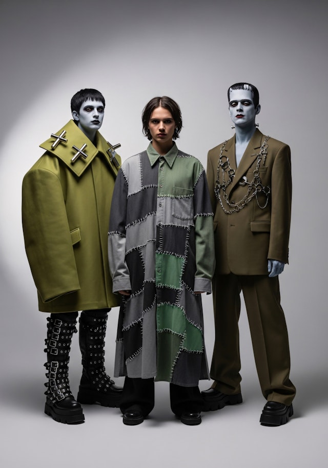 - Formal attireY2kBold accessoriesGlamQueerConfidenceStatement accessoriesDiversityUnique outfitsDesignAvant gardeMinimalisticBold outfitArtistic designNeutral backgroundPunkHalloweenColorful hairSurreal lightingDynamic poseUnique makeupDenim jacketGothicAlternative fashionStudio settingAnatomyFuturistic fashionFashionVibrantLeather jacketNature inspiredLgbtqArtistic outfit