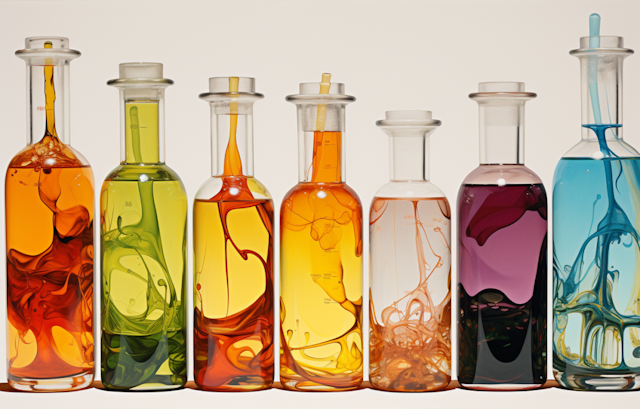 - DecorativeWarm tonesFocal pointCondensationGlassDropper bottlesTerracotta sculpturesPurple and blueSoft lightingVibrant colorsElegantOrganic aestheticModern aestheticCraftsmanshipMetallic capReflectionAmber hueMinimalisticMinimalistic backgroundGlass perfume bottleGlass bottlesClear containersReflective surfaceAmber glassSerene atmosphereVintagePerfumeModern artPastelAmber liquidLuxury