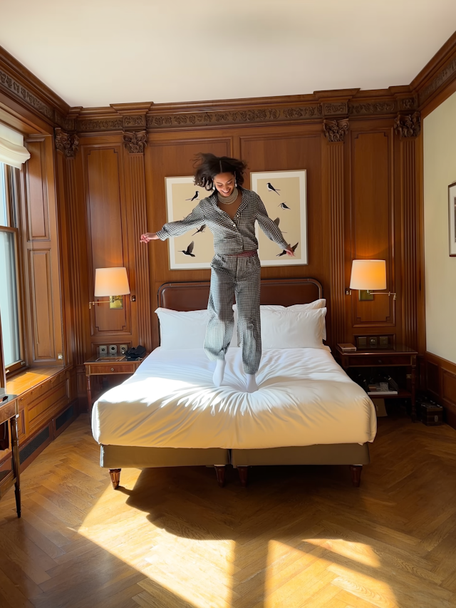 - WhimsicalWhite t-shirtIndoor sceneInterior designLavishStyleDecorative setupCalmSophisticatedWooden furnitureStriped beddingNeutral colorsOrganized spaceMedical equipmentCheckered outfitRelaxing ambianceInteriorPastelGold accentsJumpingModernMinimalistic designHospital bedEarthy tonesBlack frameTranquilBed linensOrange and white