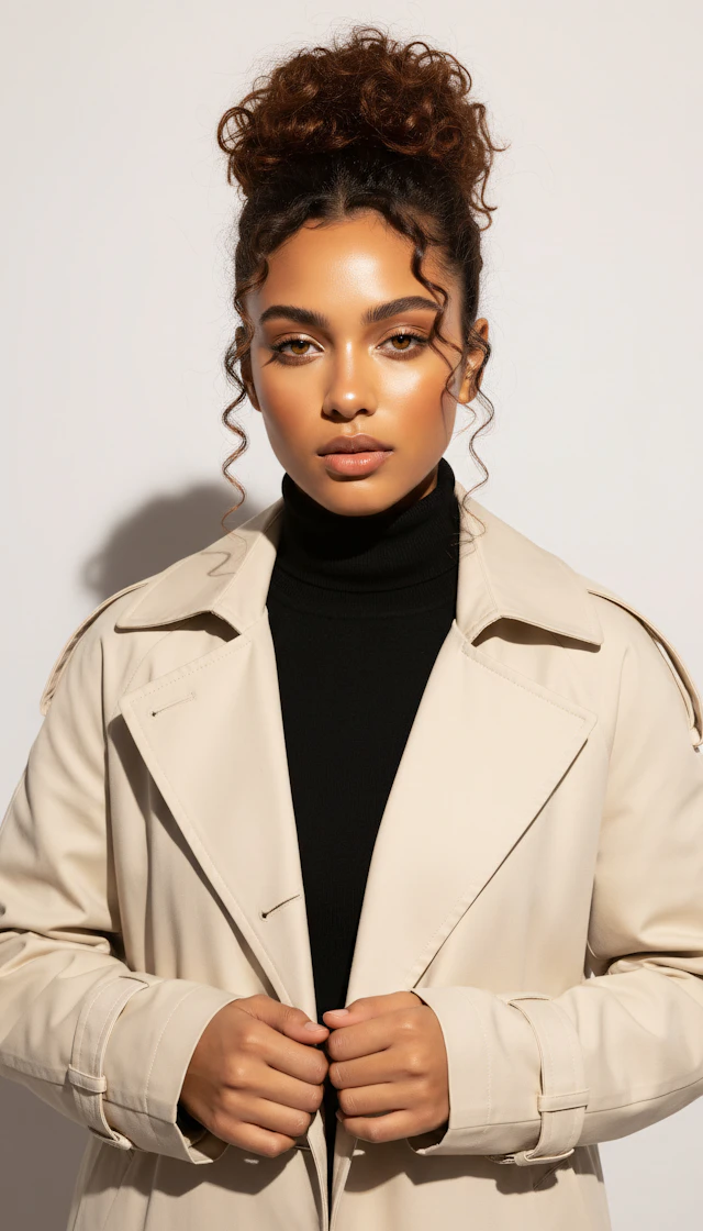 - PersonTailored fitSunlightClose upBrown leather jacketCasual styleModernSolitudeMoodyMinimalismJacketFocused expressionTextureLeather trimNeutralAutumnProtective glassesLandscapeSoft lightingBlazerNeutral backgroundIndividualityMinimalist sceneFloral embroideryBlack coatStructured designWooden hangerExplorationWomanBeige coatYellow coatStylishMysteryDramatic lighting