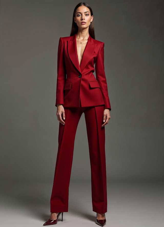 - Design studioTailored suitPortraitDecorative broochMonochromaticIndividualitySilver broochesFloral tieEmbellished collarColor coordinationStyleAllureColorful suitsRed pantsuitVibrant designClean linesVibrant backgroundChicDesigner tote bagFormal attireProfessionalModelBold makeupPolka-dot tieFormal wearBold colorsSequined topBraided hairTurquoise backgroundBusiness suitWomanConfidenceComposed expressionMinimalist