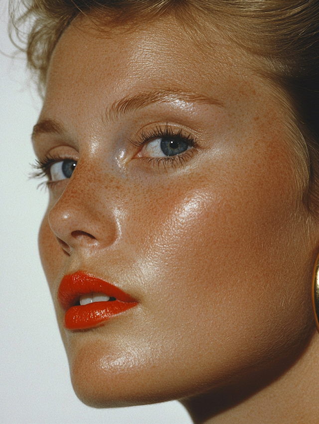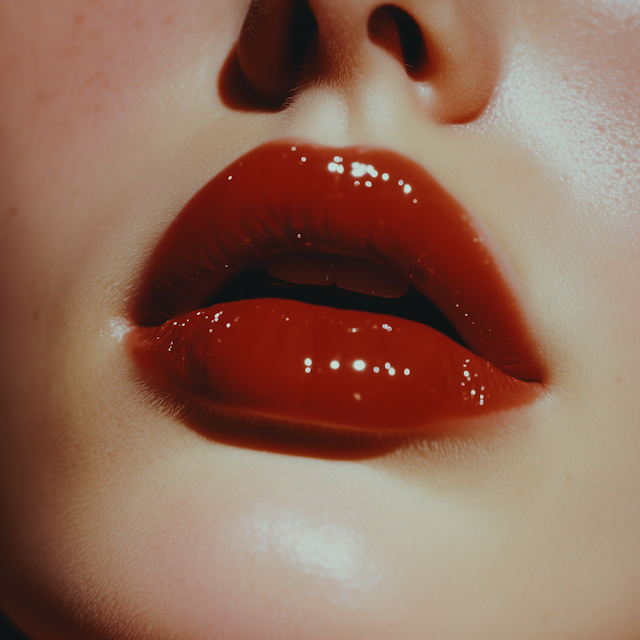 Deep red lipstick