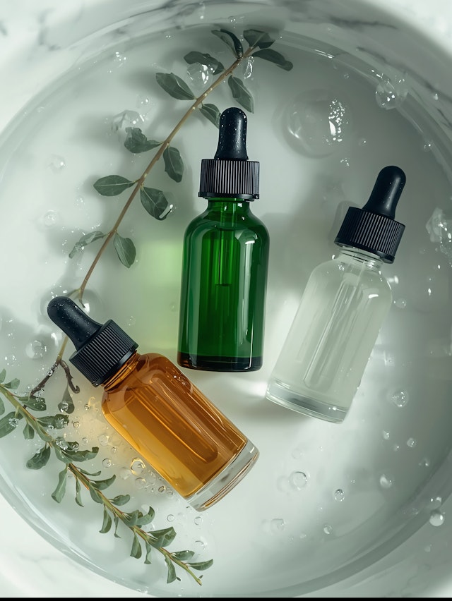 - Organic compositionMarble surfaceOrganic aestheticGlossy textureColorfulLuxuryBeautyLiquidIce blockGold accentsNatural texturesClean and freshDropperDried flowersBeigeTransparent liquidGlass bottlesSerumNatural settingTeal backgroundGolden capsAmber glassOrganic productLight green waterMoss and rocksLuxury aestheticCareClose upBeige fabricPastel colorsSkinSoft textures