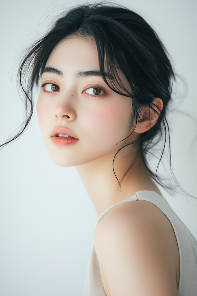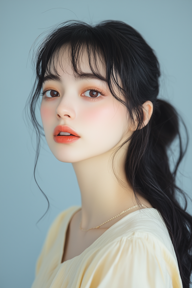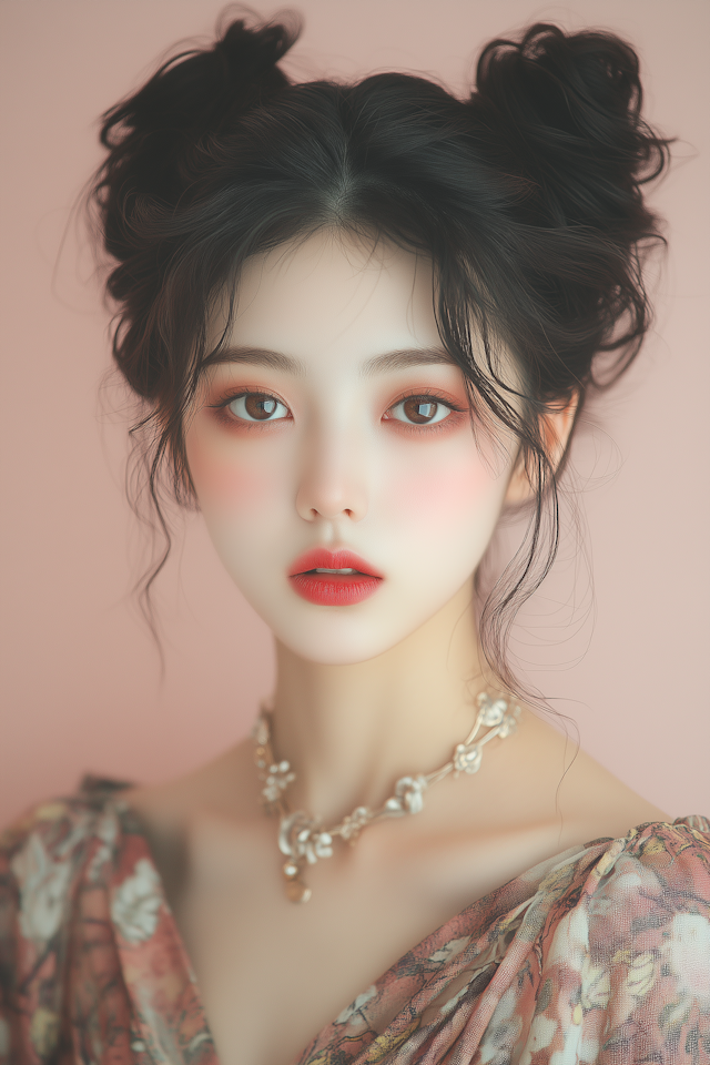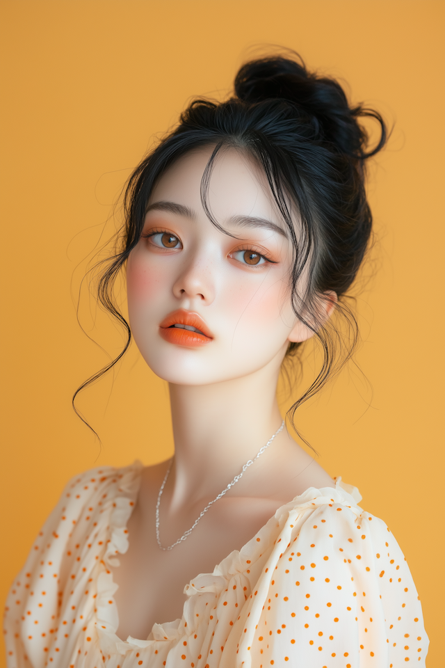 - Floral dressKimonoSmilingSoft lightingNeutral backgroundMinimalistEtherealFloral patternsBeautyConfidenceMinimalistic backgroundPolka-dotted blouseSereneDelicate featuresWarm smileWhite topSmileSoft makeupJewelryGlamourYellow blouseSilver hoop earringsCasual eleganceBrown turtleneckSerene expressionMakeupRed lips