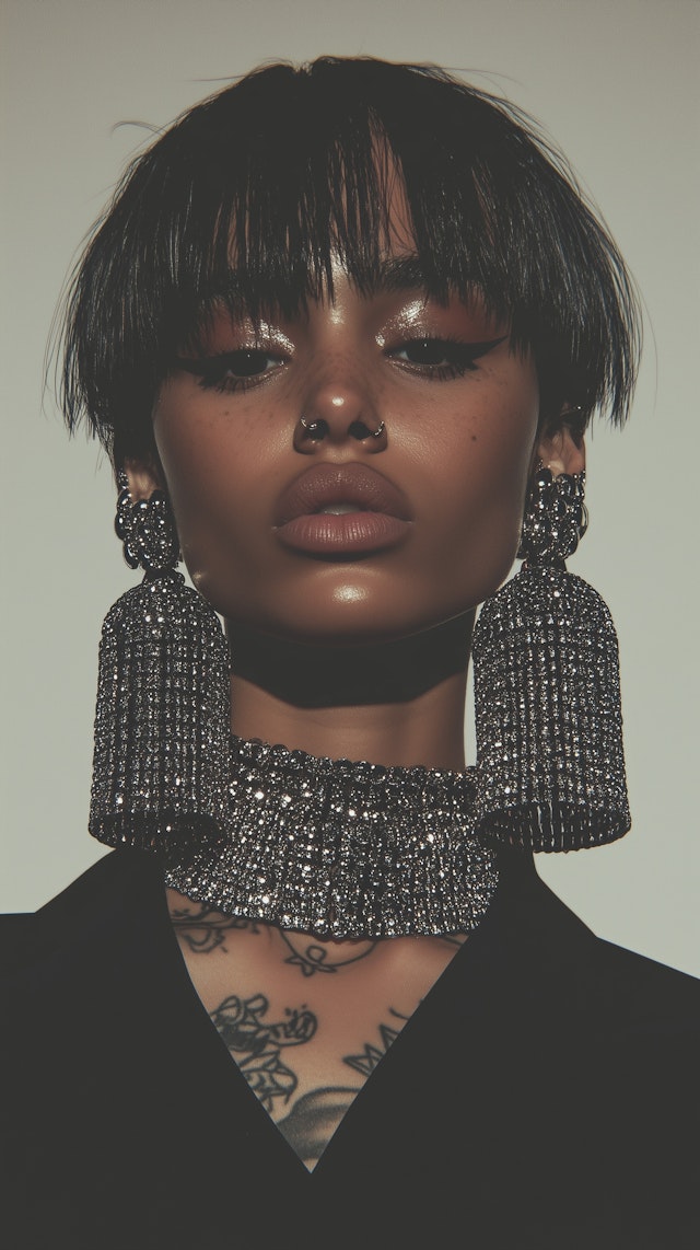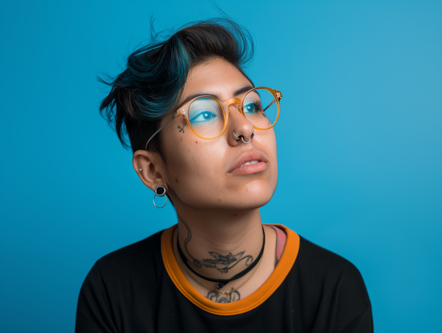 - Strong expressionGold-yellow topBeautyHalftoneComic-inspiredFashionable attirePastel paletteBright pink backgroundFuturisticLookPersonBlue eyesMuscular manPortraitEditorialLine workEdgyGlassesMonochromaticStylishElegantTattooMale faceContemplativeArtisticGeometricGraphic styleCharacterTexturedMakeup