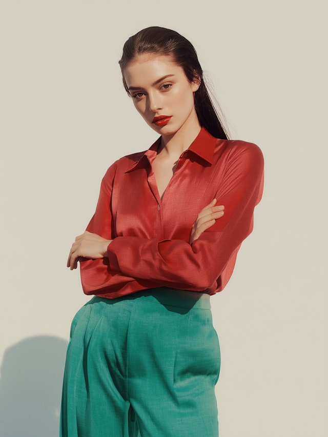 Green satin blouse