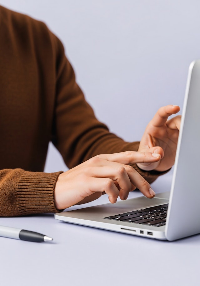 Typing on laptop