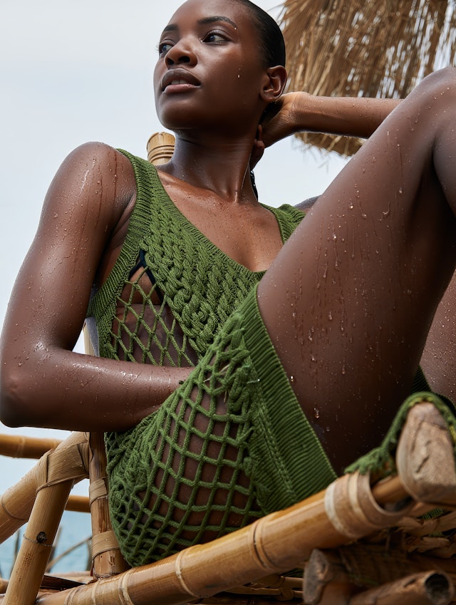 Green knit garment