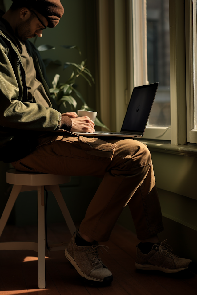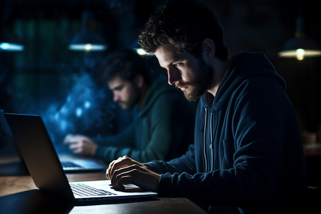 Male using dual laptops