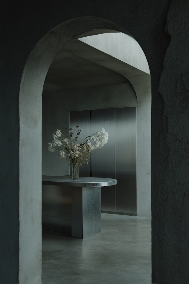 - Natural elementsMetallic finishesMinimalistClean spaceWhite backgroundUtilitarianConcreteContemporary designContemporary ambianceIndustrialTranquil atmosphereWorkspaceStaircaseModern interiorHerringbone floorIndustrial charmMeditation spaceOrganic shapesGeometricFuturisticLightNeutral colorsCozy interiorMonochromaticMinimalist designNeutral tones