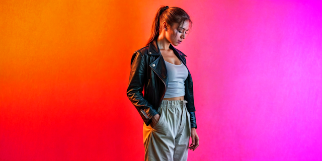 - Clear-framed glassesSoft lightingVibrant colorsBoldElegant attireYoung womanApproachableConfidenceModernInnocenceExpressiveForestCityProfilePlayful peekabooUrbanAdventurePinkSleek hairSteampunkIntrospectiveFuturistic glassesStyleFocusGradientDenim jacketsMinimal makeupLeather jacketVintagePastel tonesVibrant