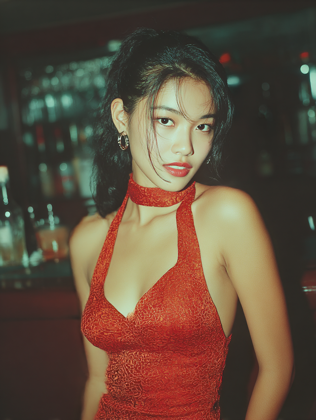 Red satin dress