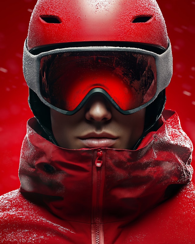 Red ski suit